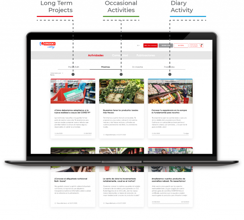 After a series of iterations, we combined the two ideas into the final proposal developed below: Eroski Crea Contigo.