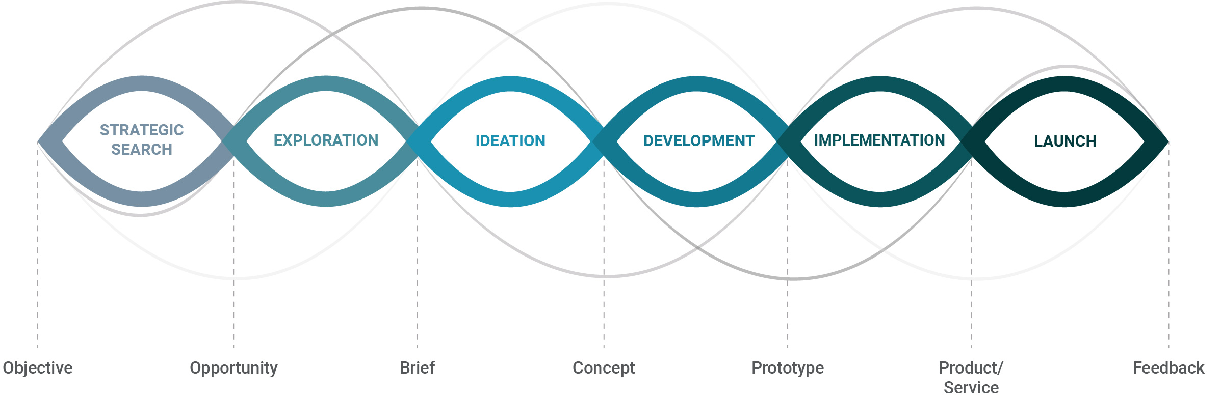 Through an iterative process consisting of six divergent and convergent stages, it aims to materialise products and services in order to achieve significant results for people, both technologically feasible and economically viable.