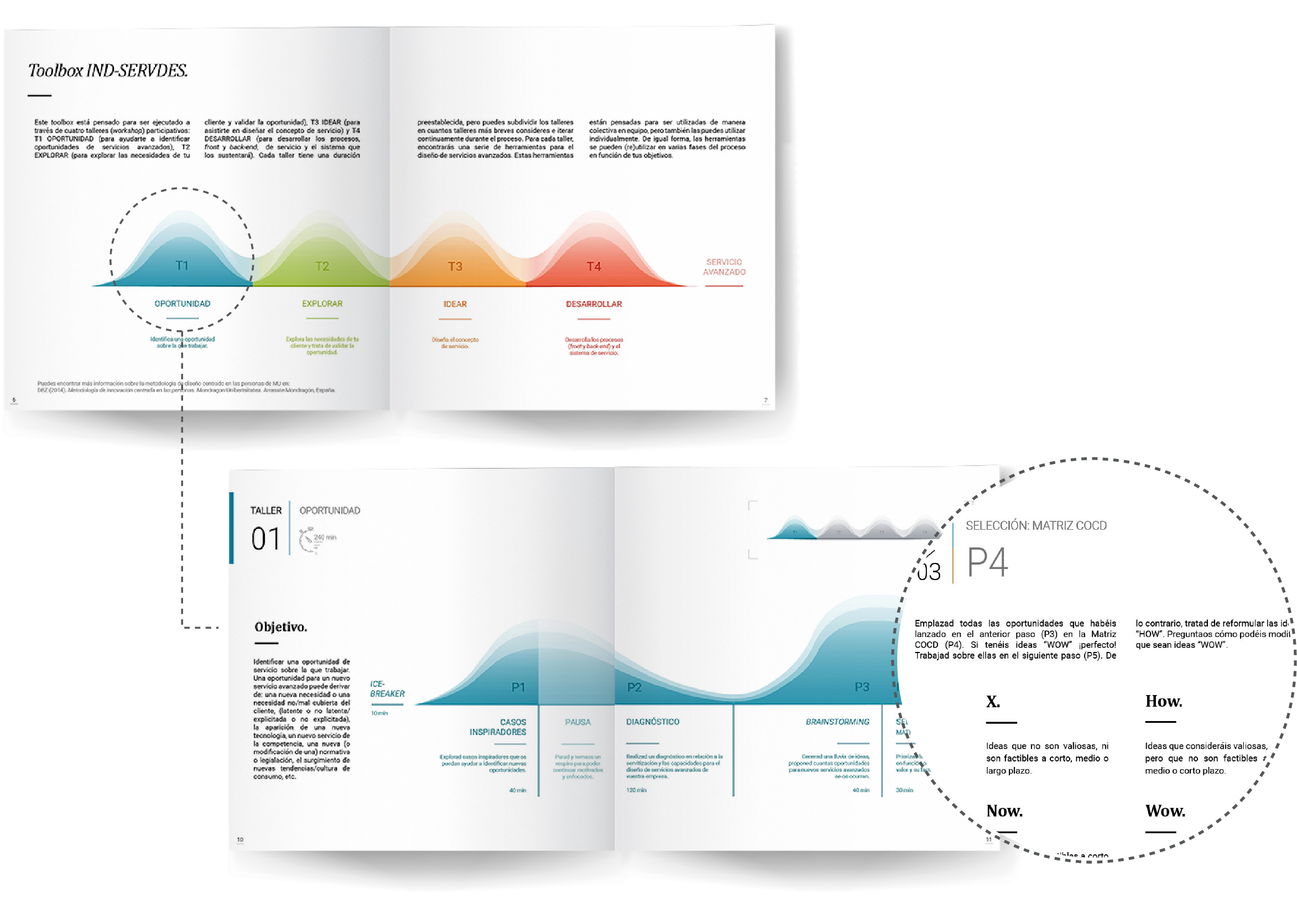 T1 Oportunidad, T2 Explorar, T3 Idear, T4 Desarrollar