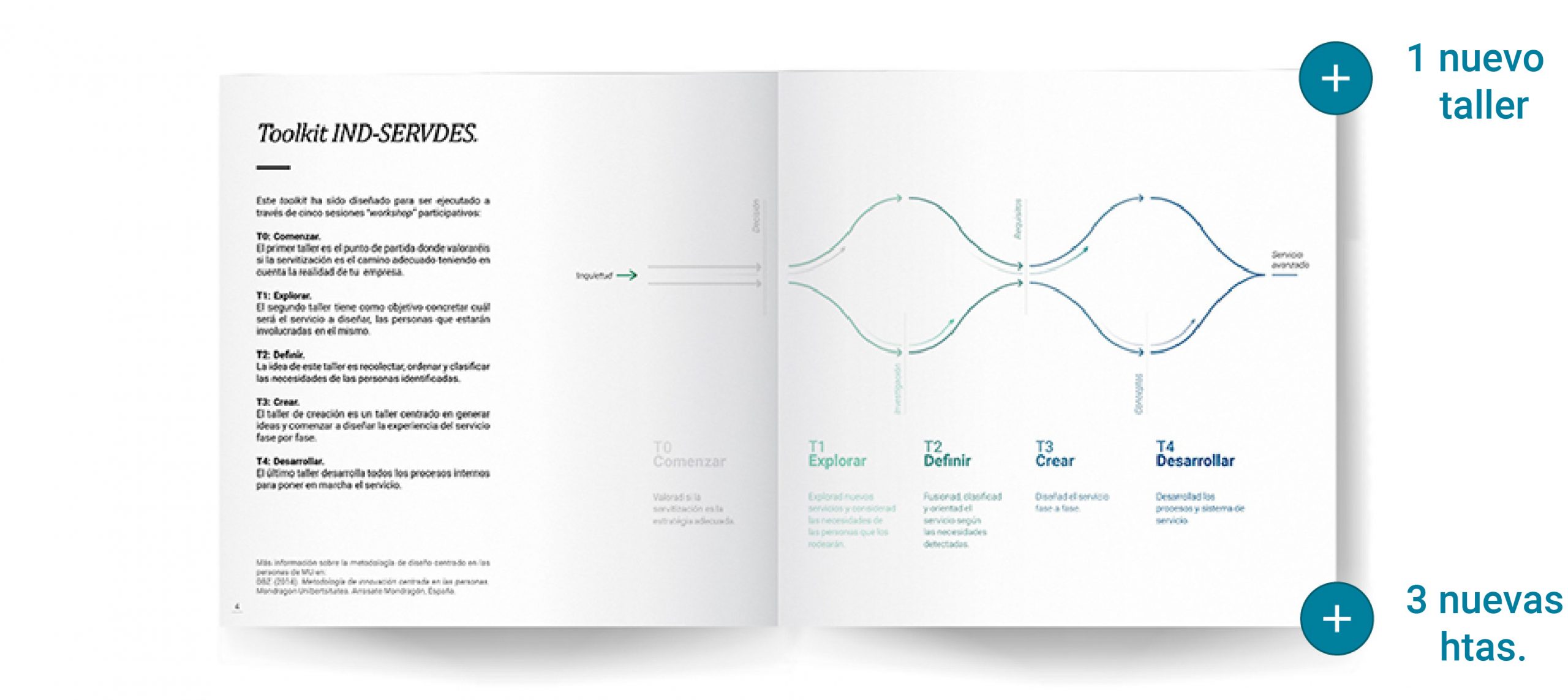 Tras iterar y poner en práctica IND-SERVDES I con 10 empresas, vimos la necesidad de renovar la guía y crear una tercera versión en inglés (a demás de castellano y euskara).