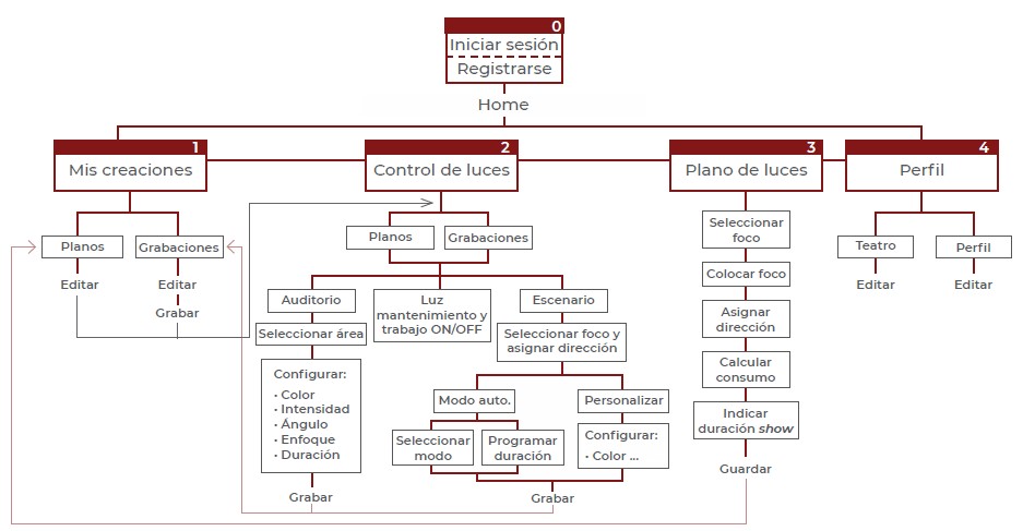 Diseñar un sistema de iluminación que permita a los usuarios controlar diferentes tipos de luces en distintas áreas de un teatro, contemplando la «Iluminación Centrada en las Personas» y el consumo energético.